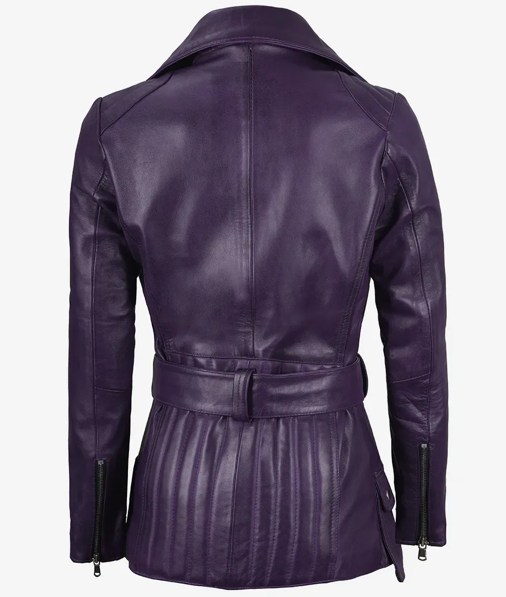Asymmetrical Purple Belted Biker Style Leather Jacket