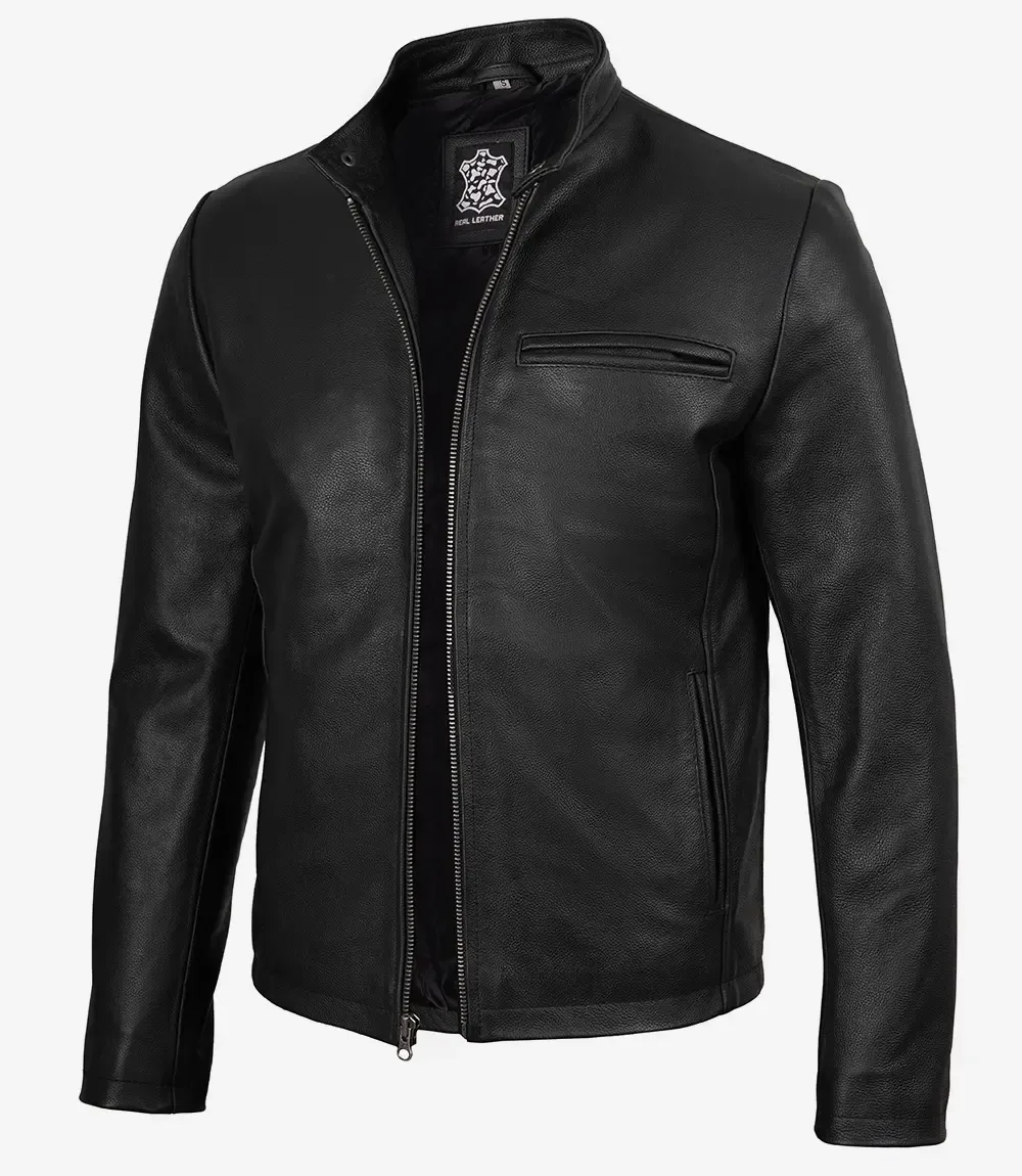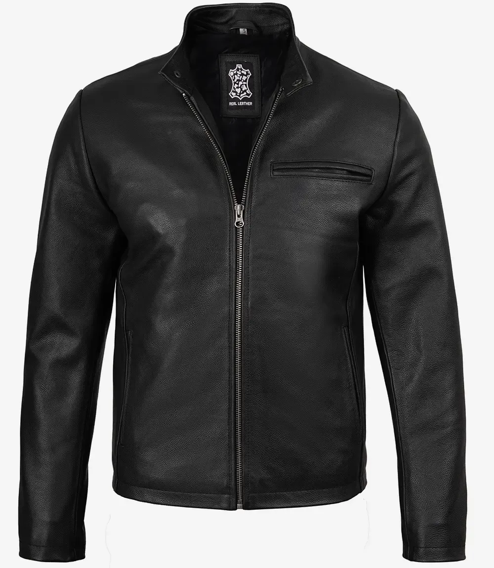 Black Biker Style Cowhide Leather Jacket