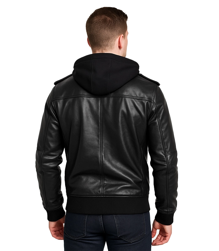 Bravado Black Leather Bomber Jacket With Hood
