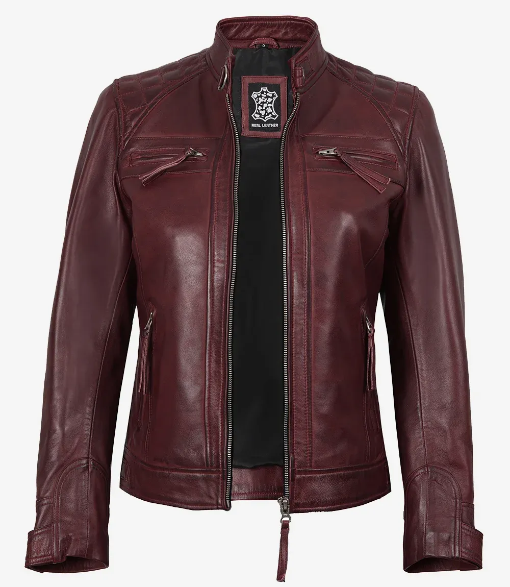 Burgundy Real Lambskin Leather Biker Style Jacket