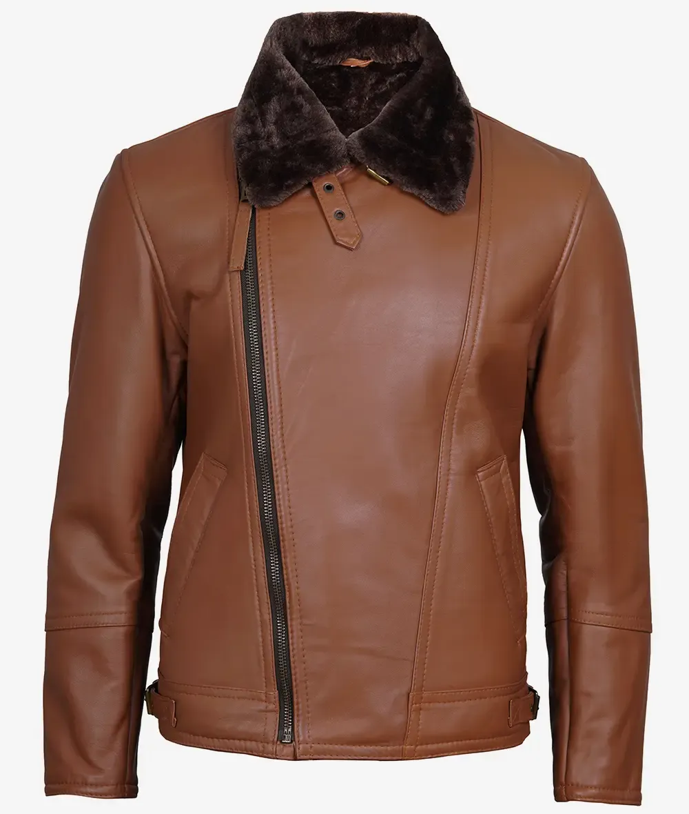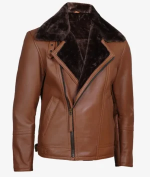 Cognac Leather Shearling Moto Jacket