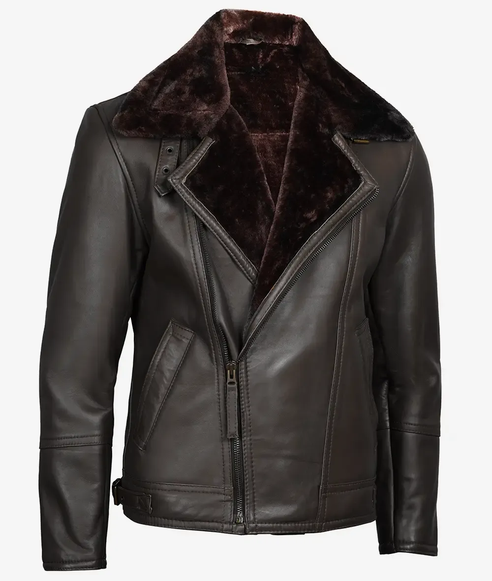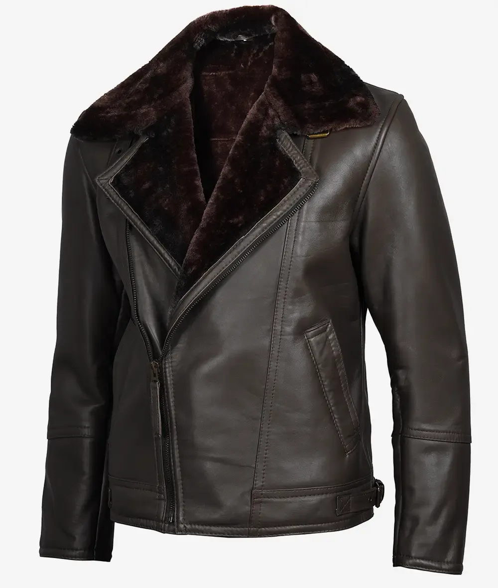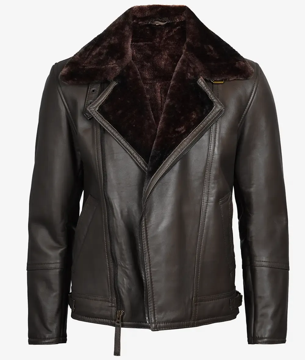 Dark Brown Shearling Leather Moto Jacket – Asymmetrical Shearling Lining
