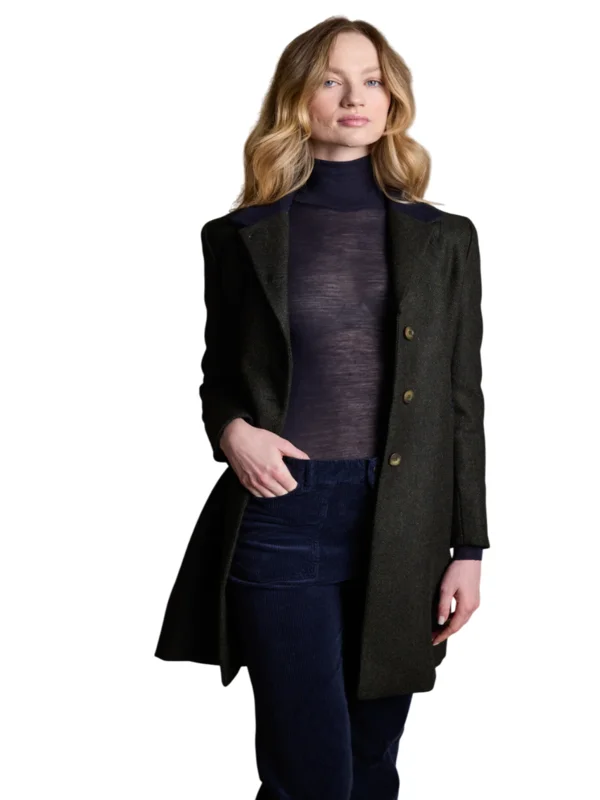 Care: Dry clean only to maintain the coat’s structure, fabric integrity, and detailing