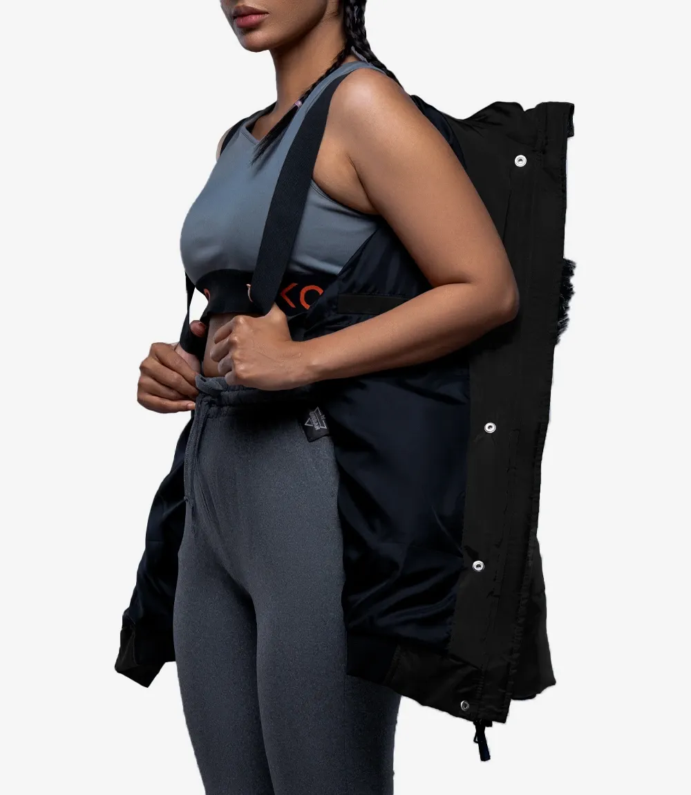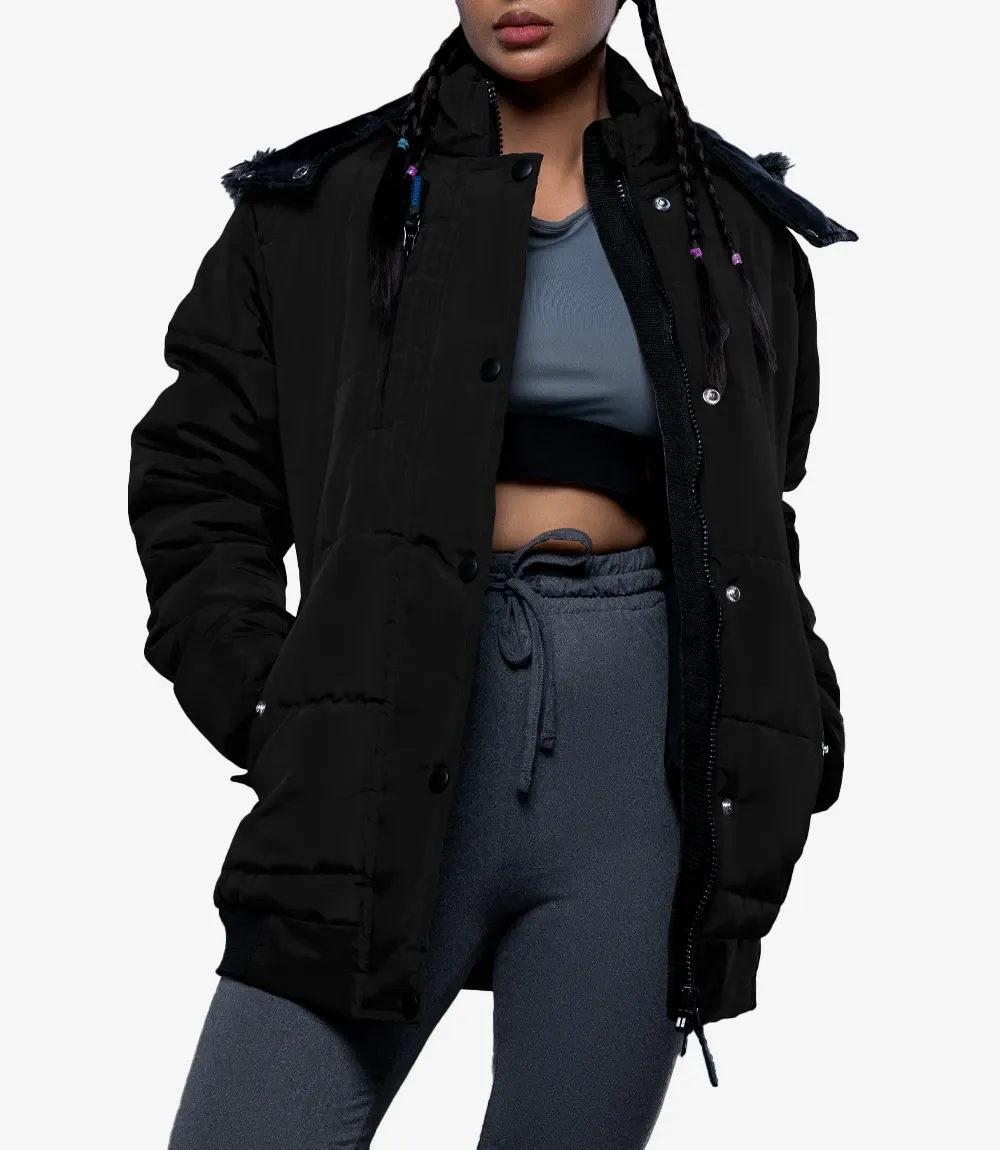 Jasmime Gray 3/4 Length Puffer Jacket – Faux Fur Trim Hood