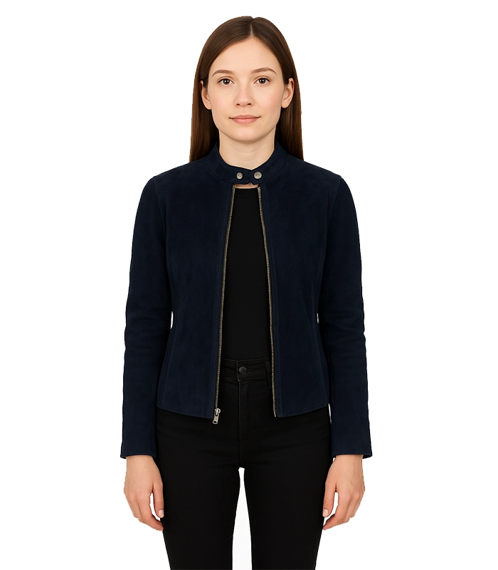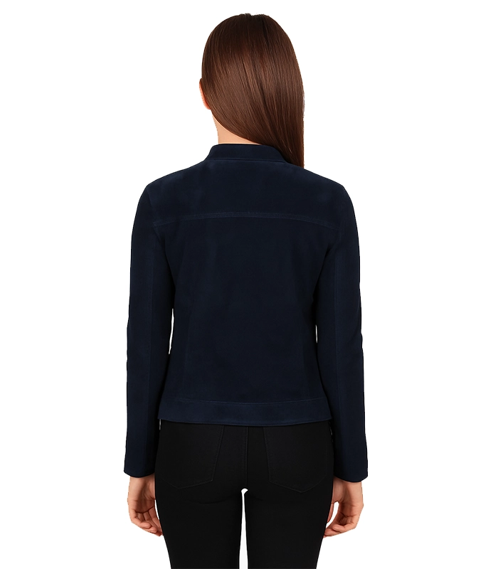 Kelsee Navy Blue Suede Biker Jacket
