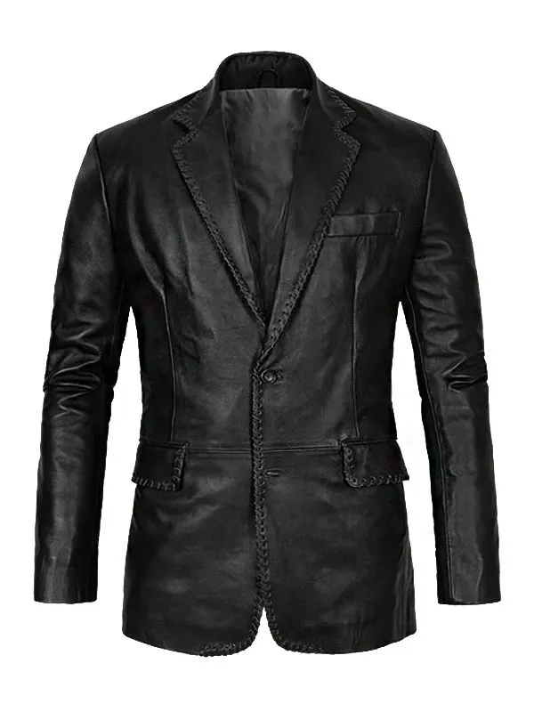 Men Sleek Black Leather Blazer