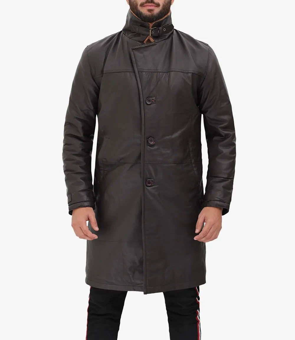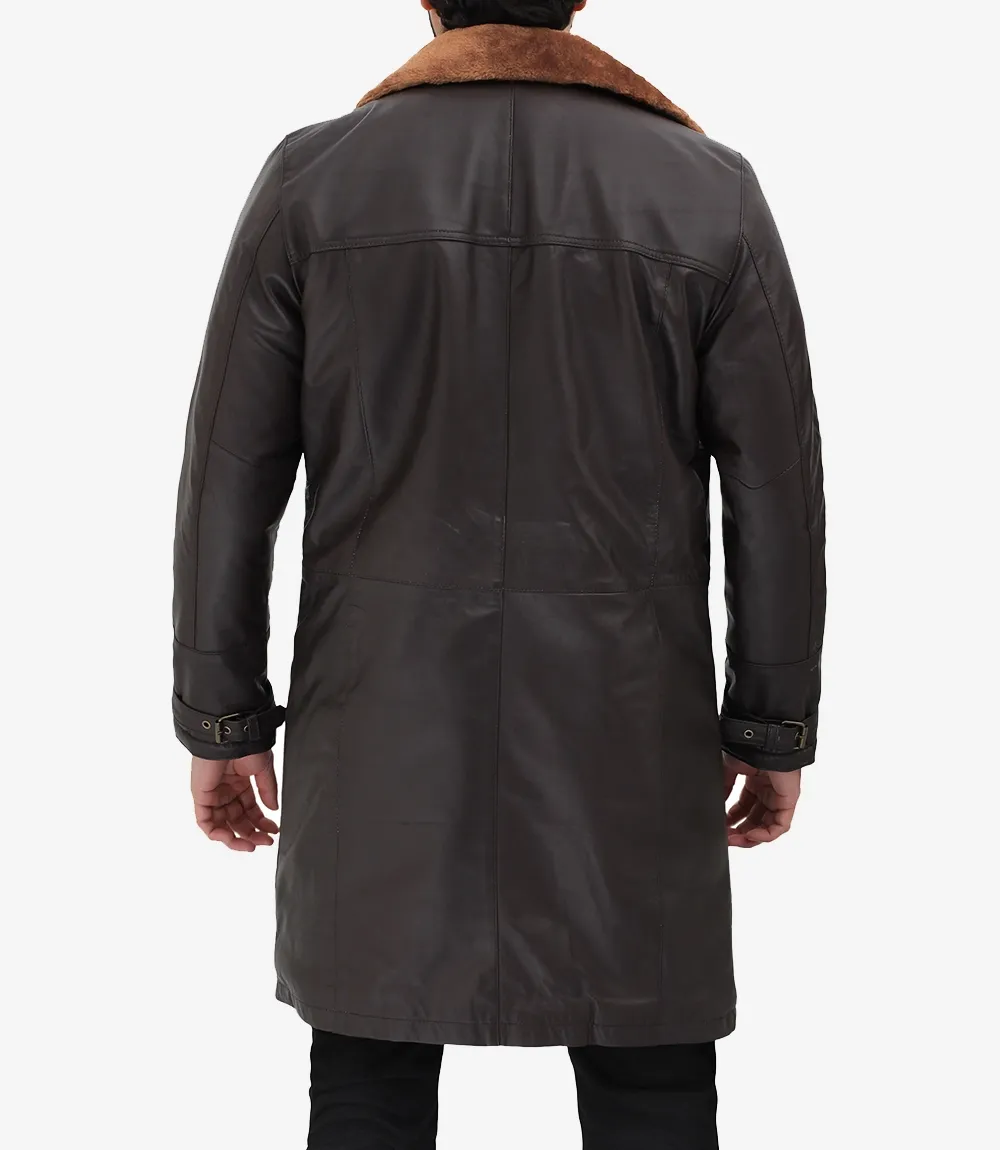 Mens 3/4 Length Dark Brown Leather Shearling Coat