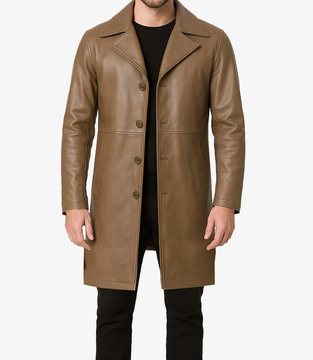 Mens 3/4 Length Lambskin Leather Brown Coat