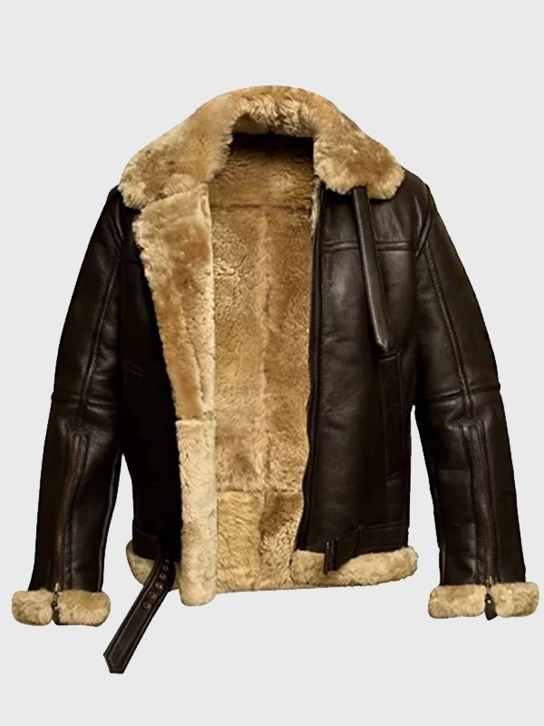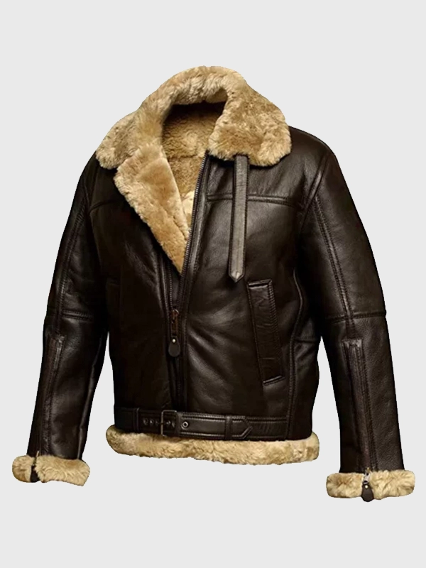 Men’s Brown Shearling Lined Aviator Bomber Jacket