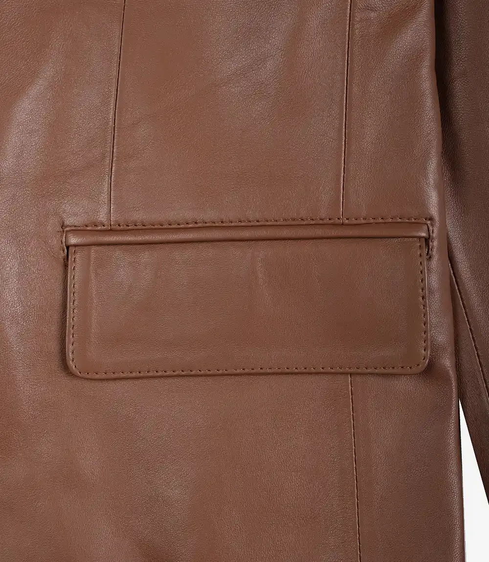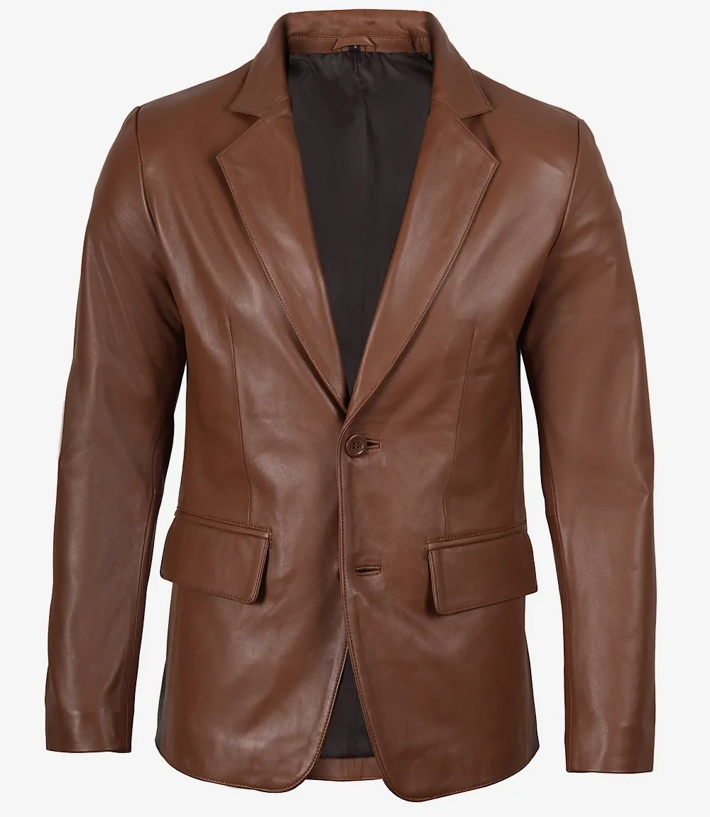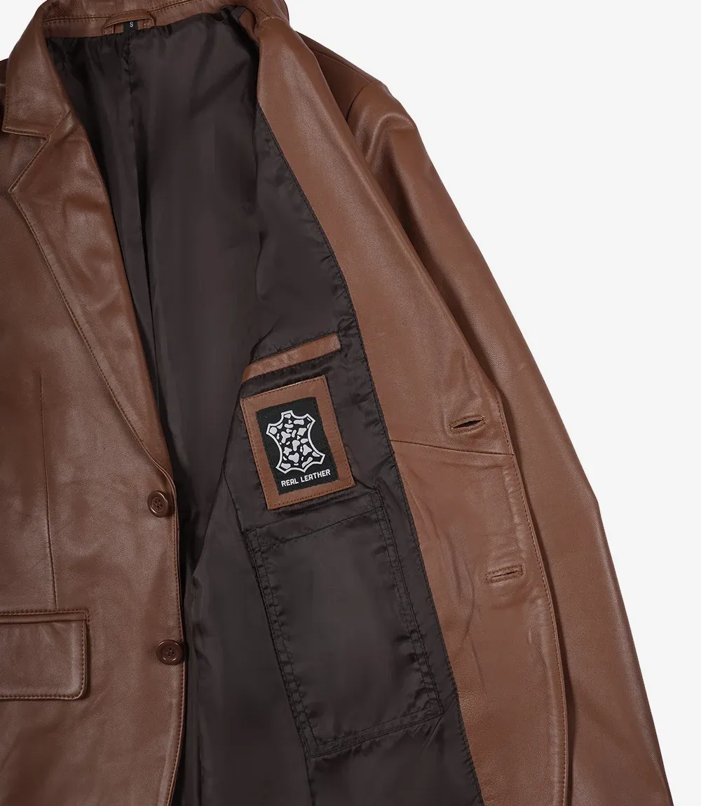 Mens Exclusive Two Button Real Leather Cognac Blazer