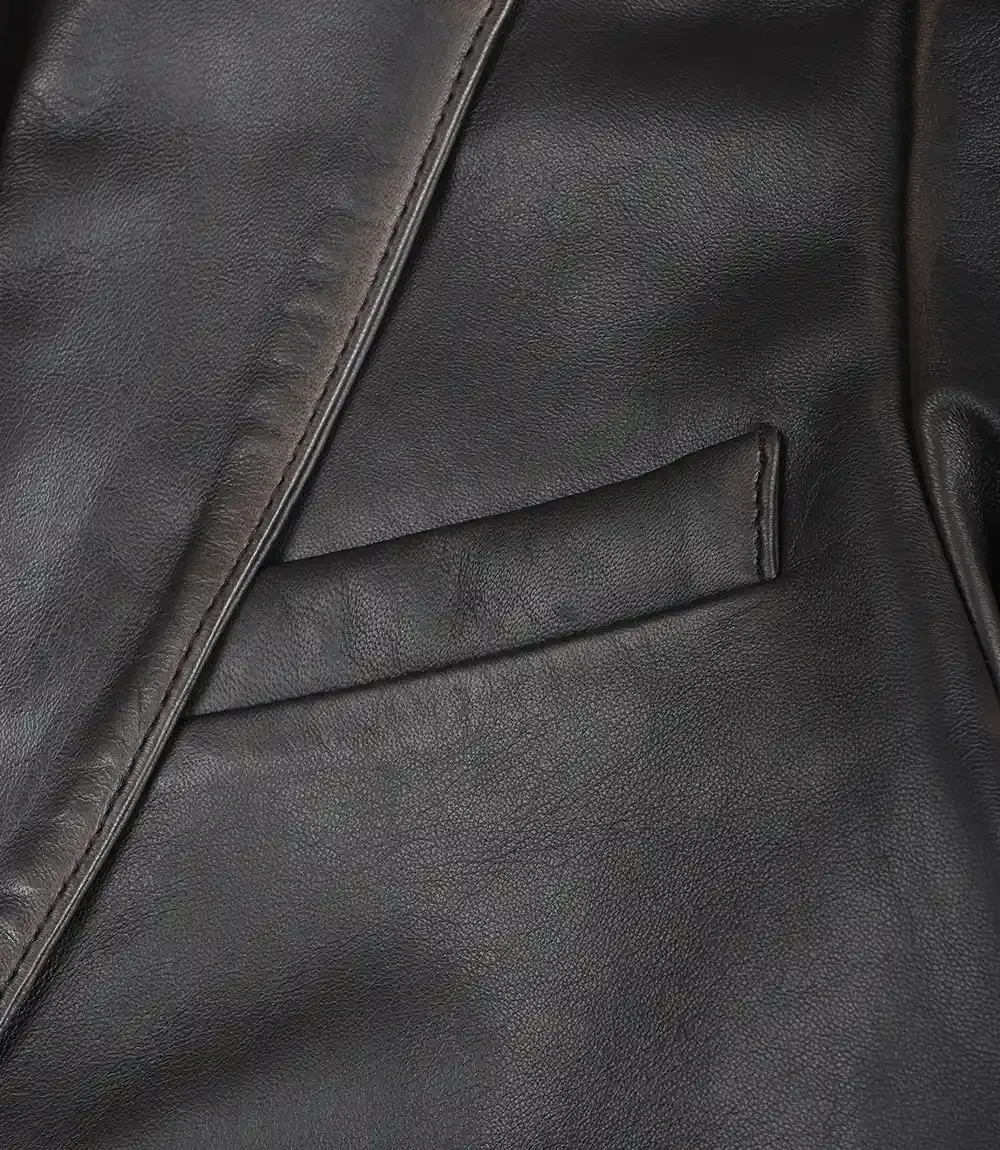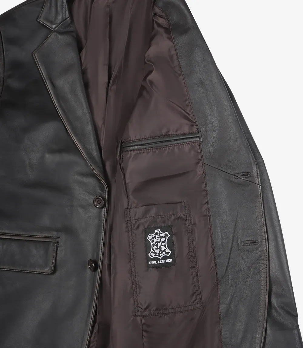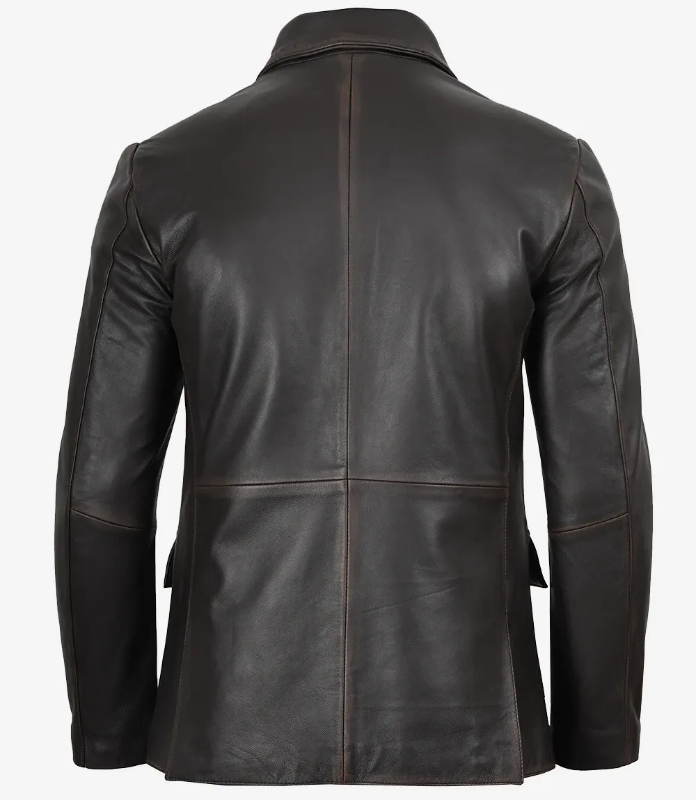 Mens Notch Lapel Distressed Brown Leather Blazer – Two Button