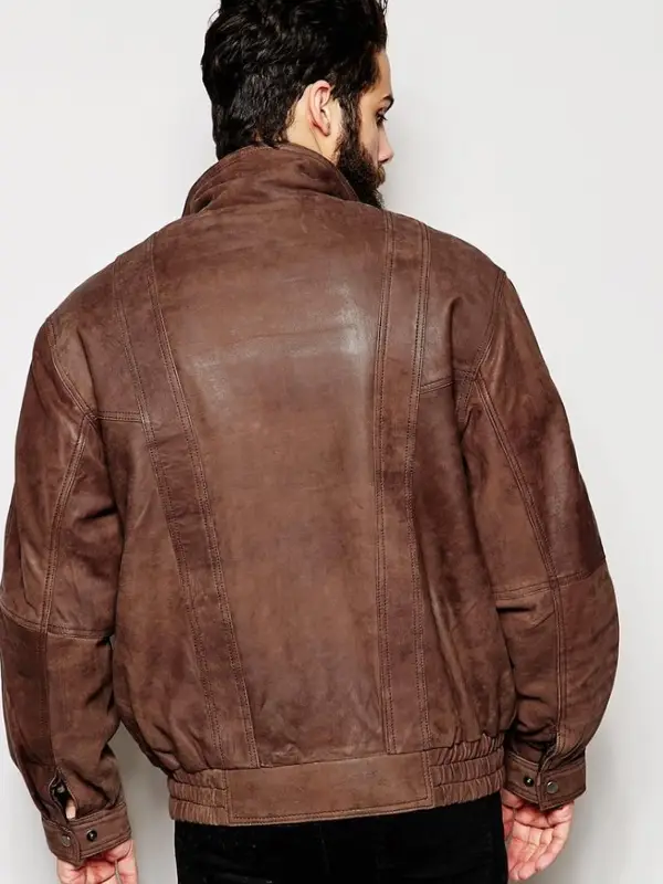 Mens Oversized Brown Leather Bomber Jacket