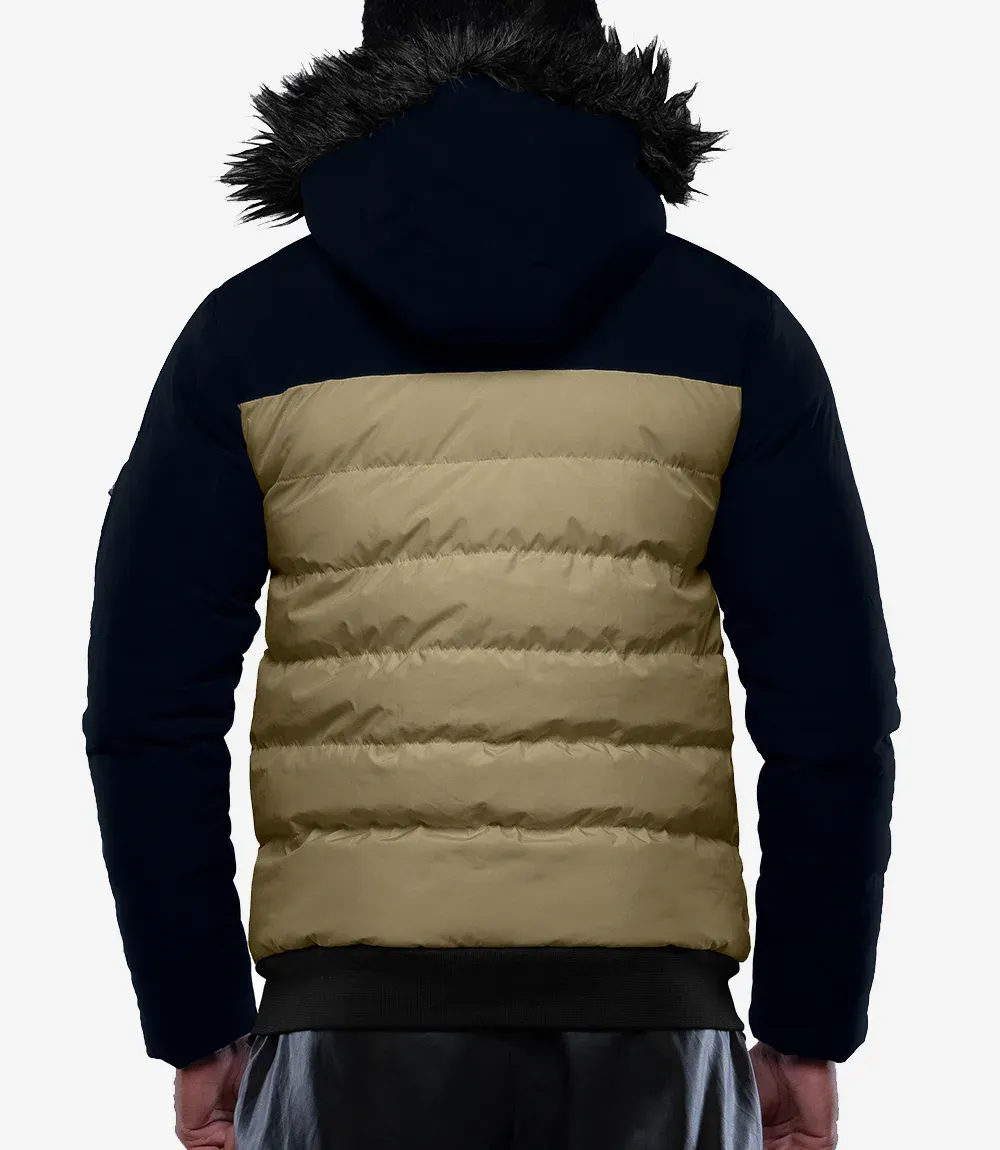 Walter Mens Duck Down Beige and Blue Puffer Jacket with Hood