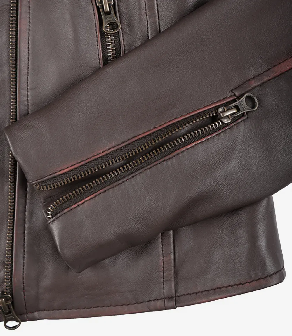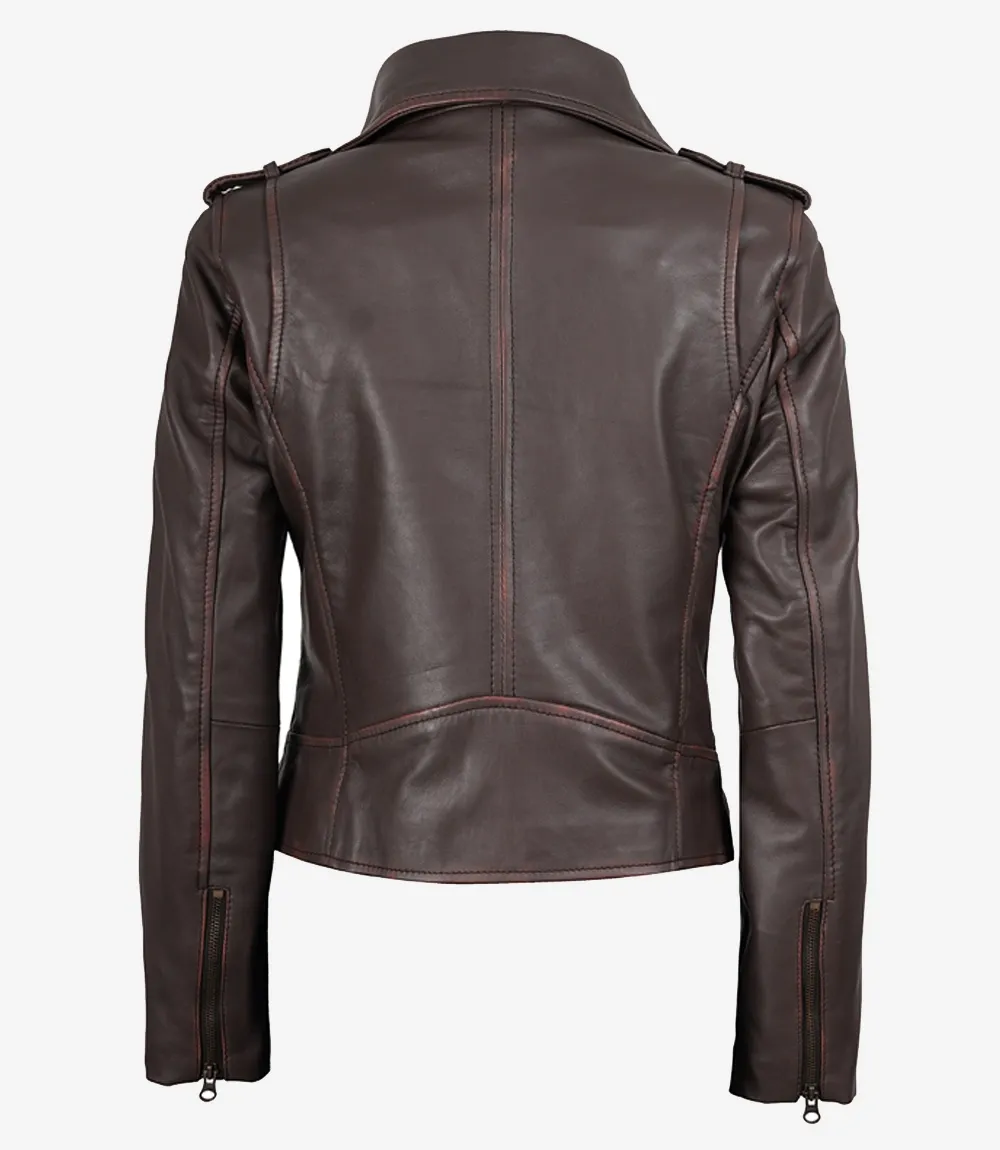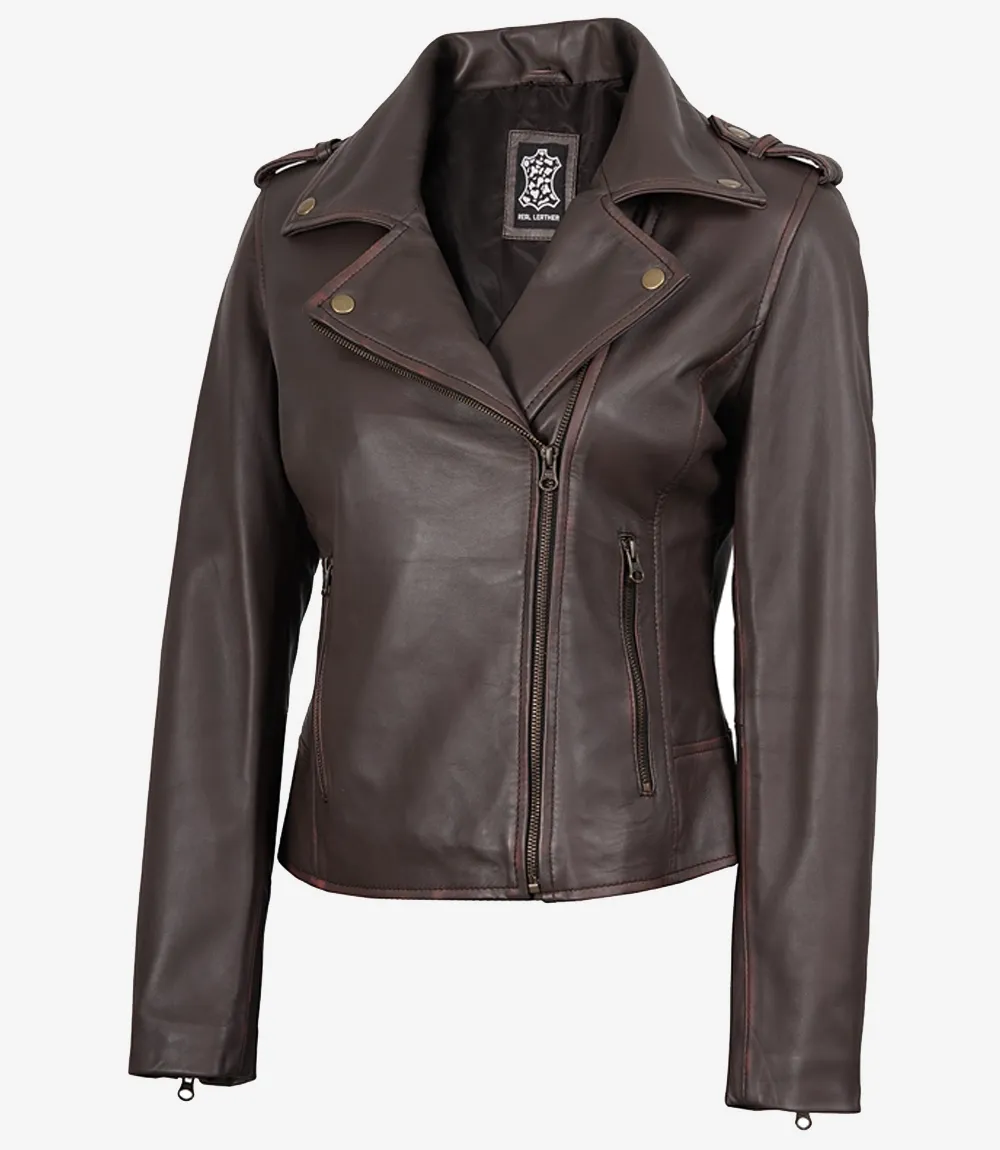 Women Dark Brown Asymmetrical Biker Style Leather Jacket