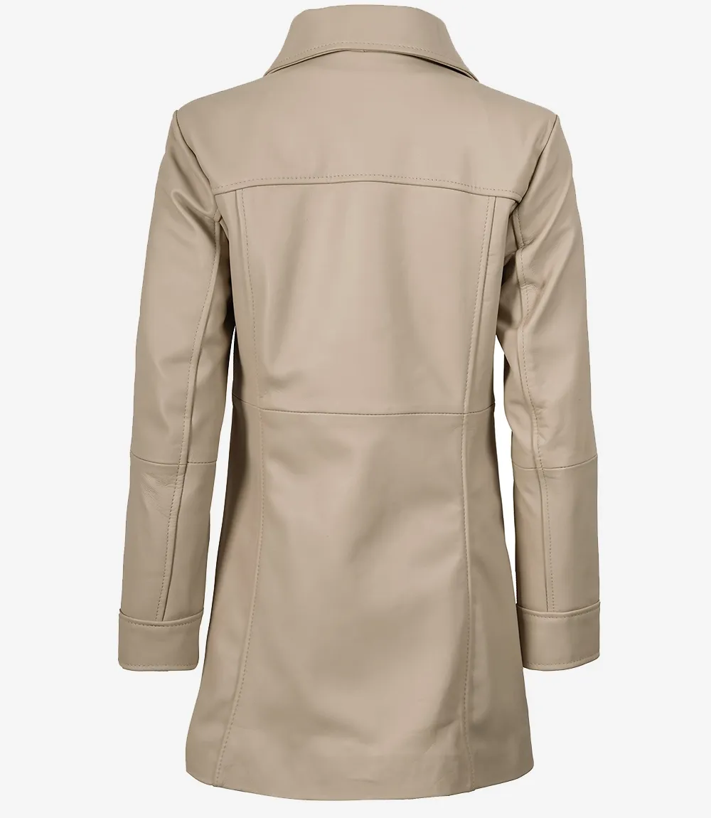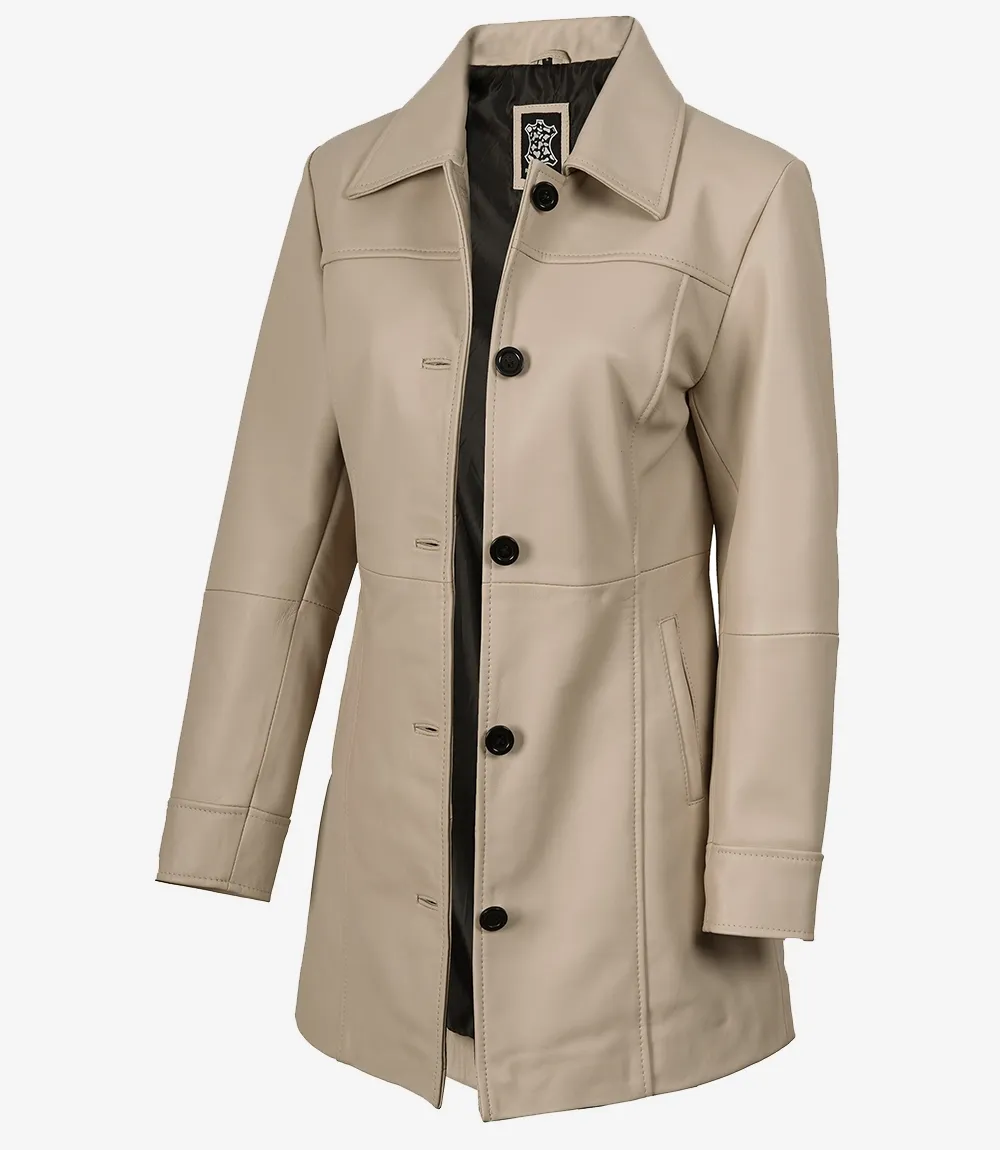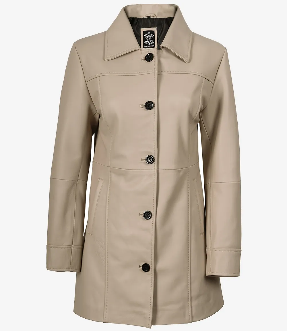 Women’s Real Lambskin Leather 3/4 Length Beige Coat